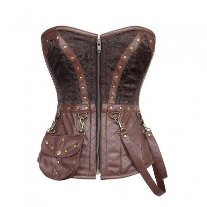 Note: Heavy Duty Authentic Steel Boned Overbust Steampunk Corset with belt and bag pockets