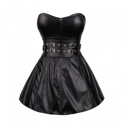 Note: Faux Leather Corset Dress Black Strapless Dress Club wear Sexy Dress Bustier Outwear Buckled Body Shaper