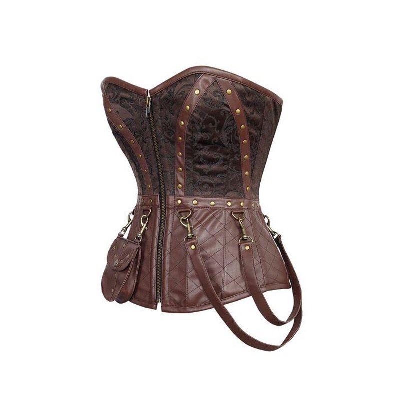Note: Heavy Duty Authentic Steel Boned Overbust Steampunk Corset with belt and bag pockets
