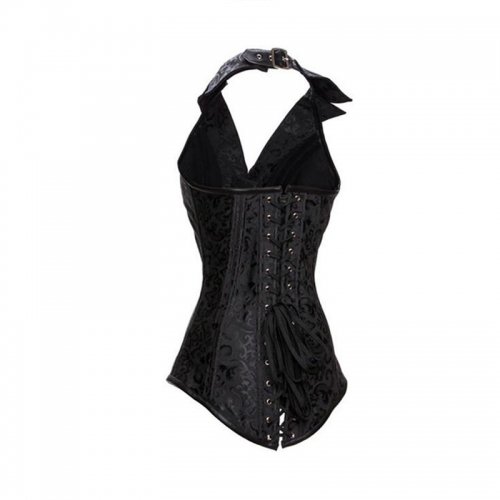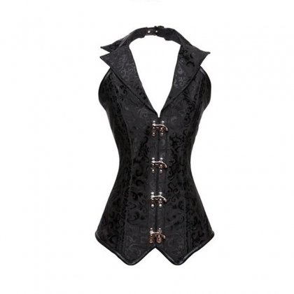 Note: Steampunk Victorian Brocade Halter Collared Vest Overbust Corset with Latches.