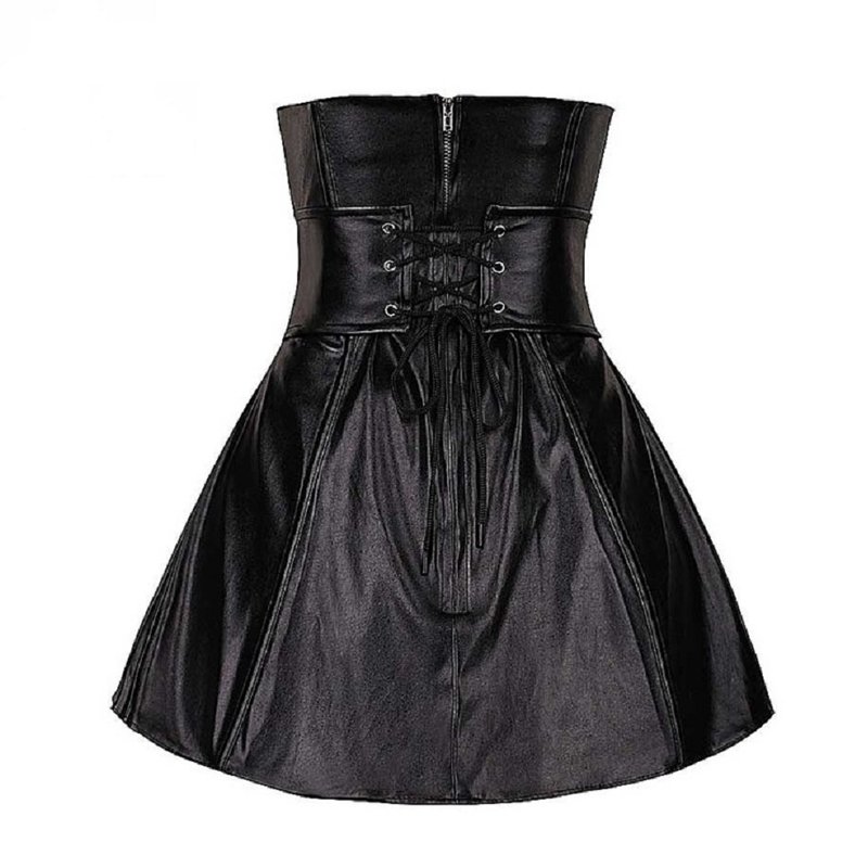 Note: Faux Leather Corset Dress Black Strapless Dress Club wear Sexy Dress Bustier Outwear Buckled Body Shaper
