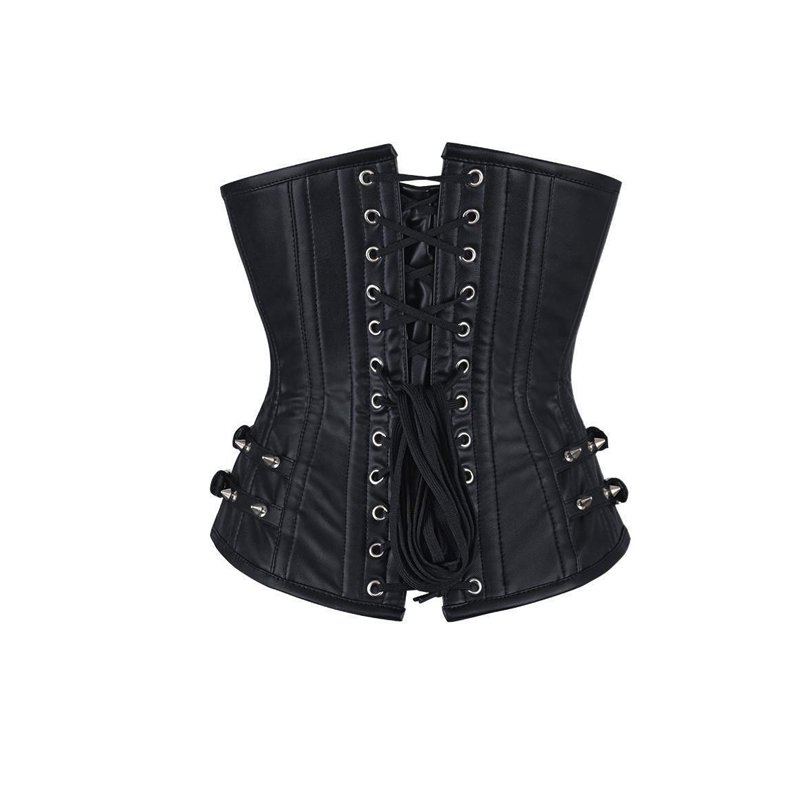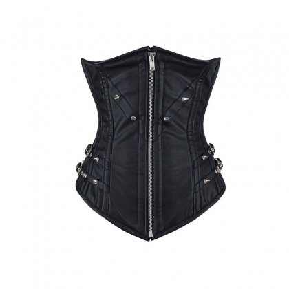 Note: Black Corset made of leather with spikes, Buckles and zip.