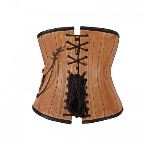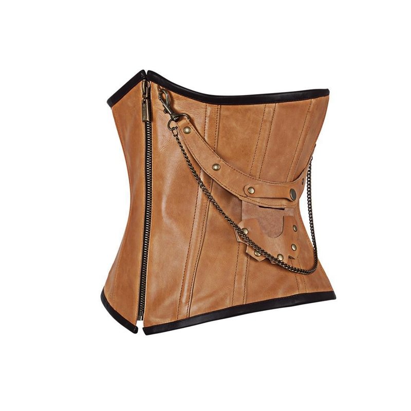 Note: Cognac Leather Underbust Corset with chain and bag on Side.